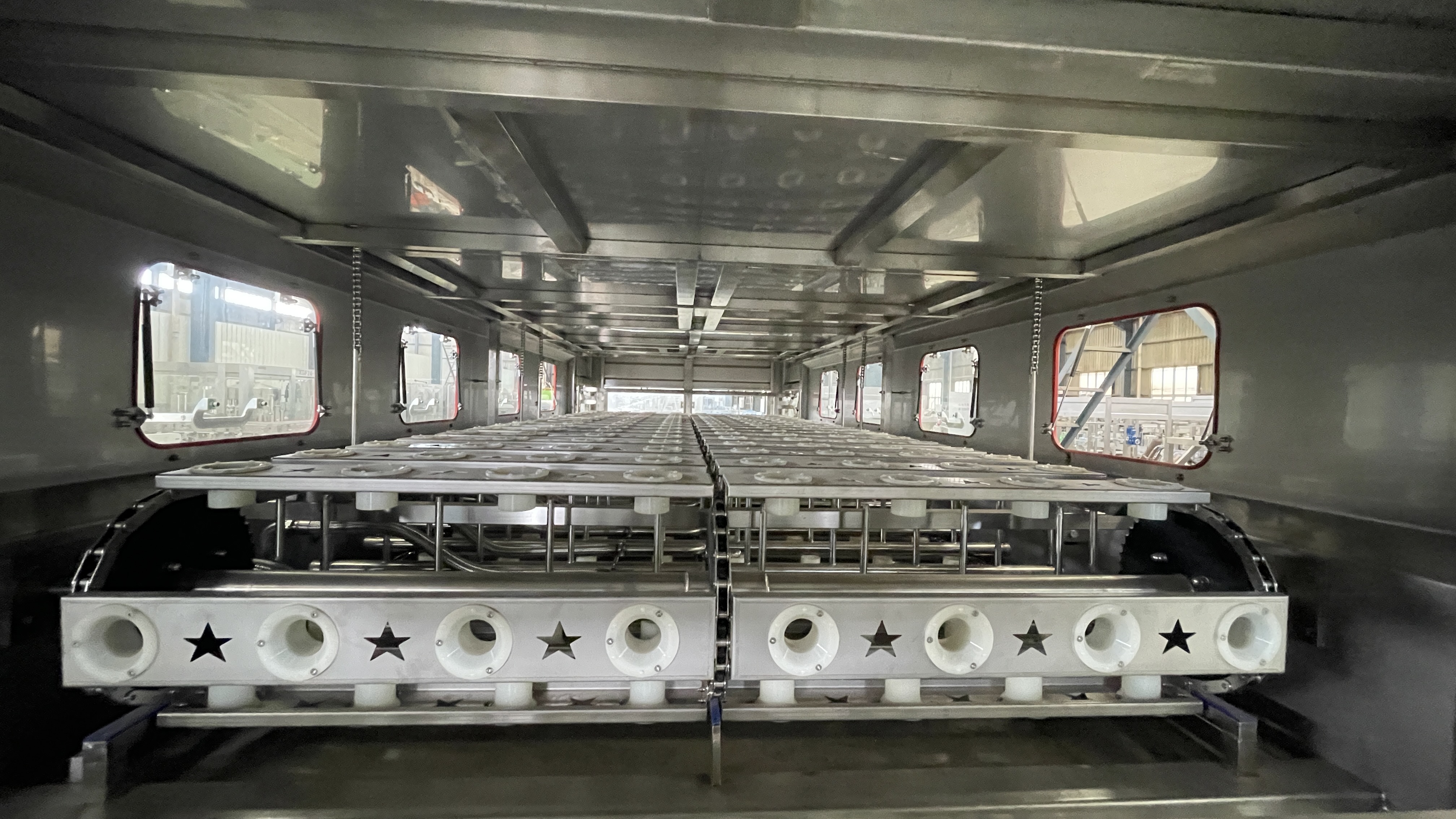 套蓋和壓蓋全過程均在封閉隧道內進行,有效地防止純凈水在灌裝過程中可能發生的二次污染,完全符合衛生標準。