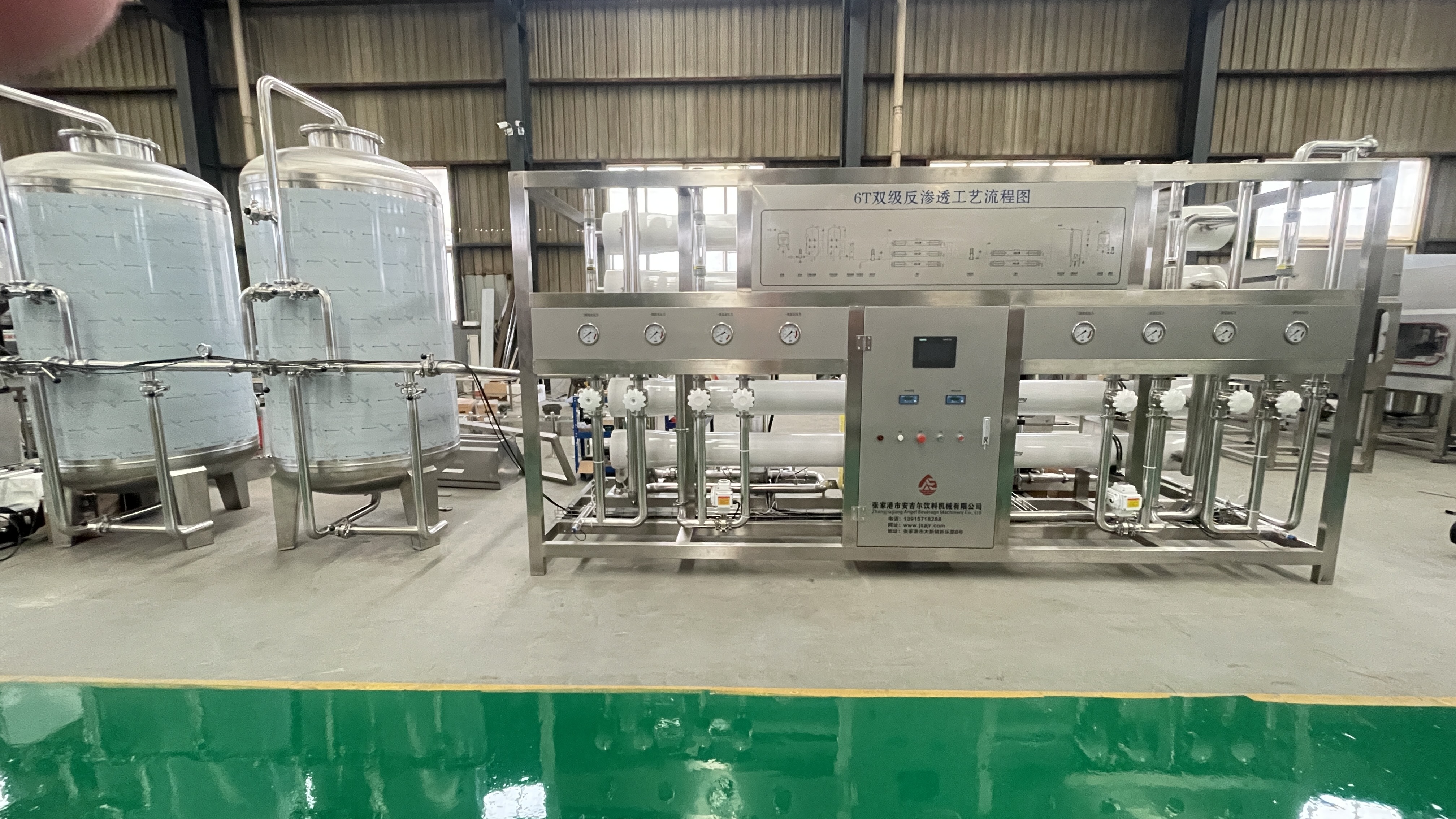 反滲透系統主要設備有石英砂過濾器,活性炭過濾器,鈉離子交換器,RO(反滲透),紫外線消毒器,精密過濾器,臭氧發生器,水箱等。處理能力為0.5-50噸/小時。它可以有效地去除泥濘的有機物,鐵,錳和氧化物,過濾懸浮物,膠體,微生物殘留的氧和水中的一些重金屬離子,降低水的硬度,使各種規格的水質完全符合國家淡水標準的淡水。